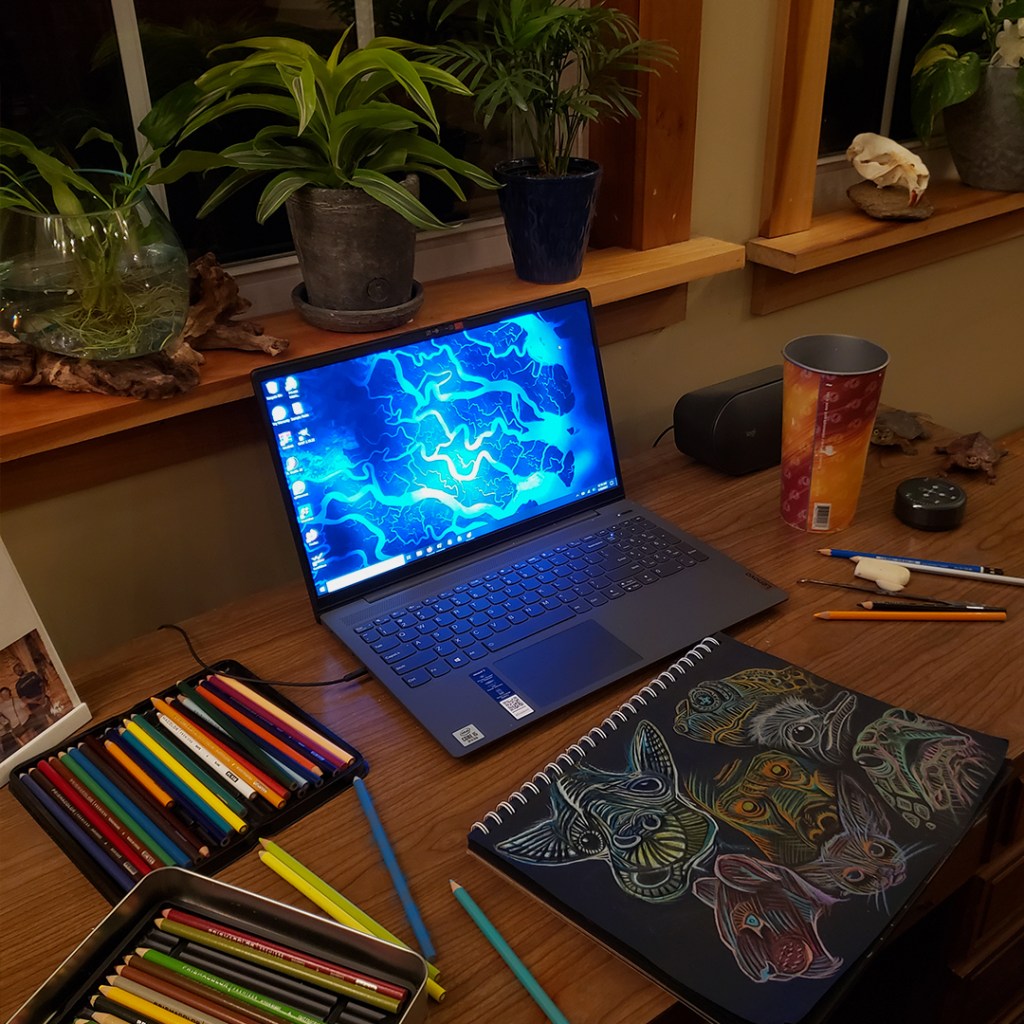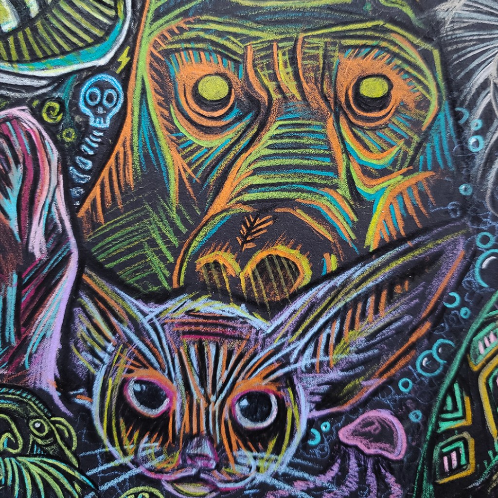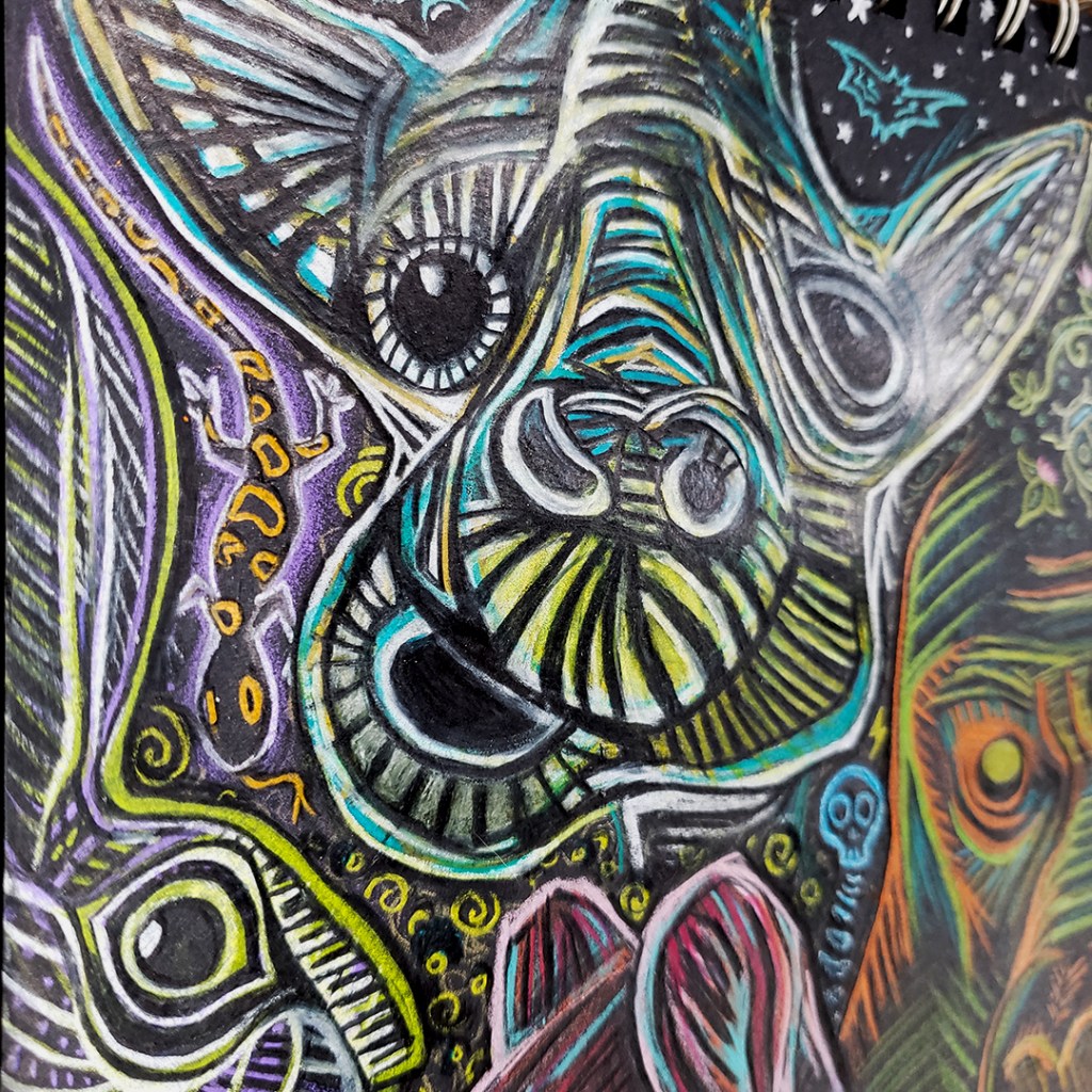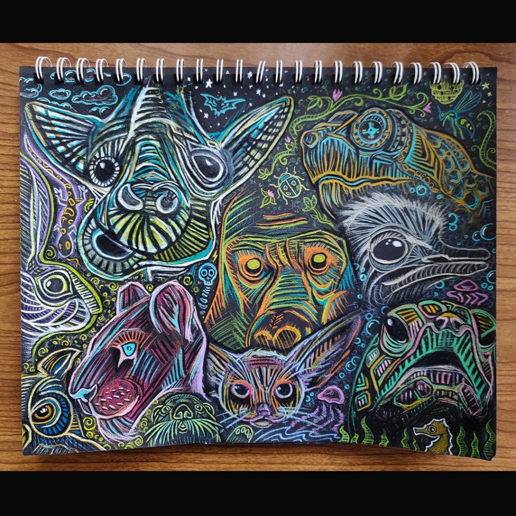 I slowly worked on this drawing over the course of a couple years, adding an animal whenever I was in a creative mood. The first thing I drew was the gorilla and the last was the little seahorse in the bottom right hand corner.