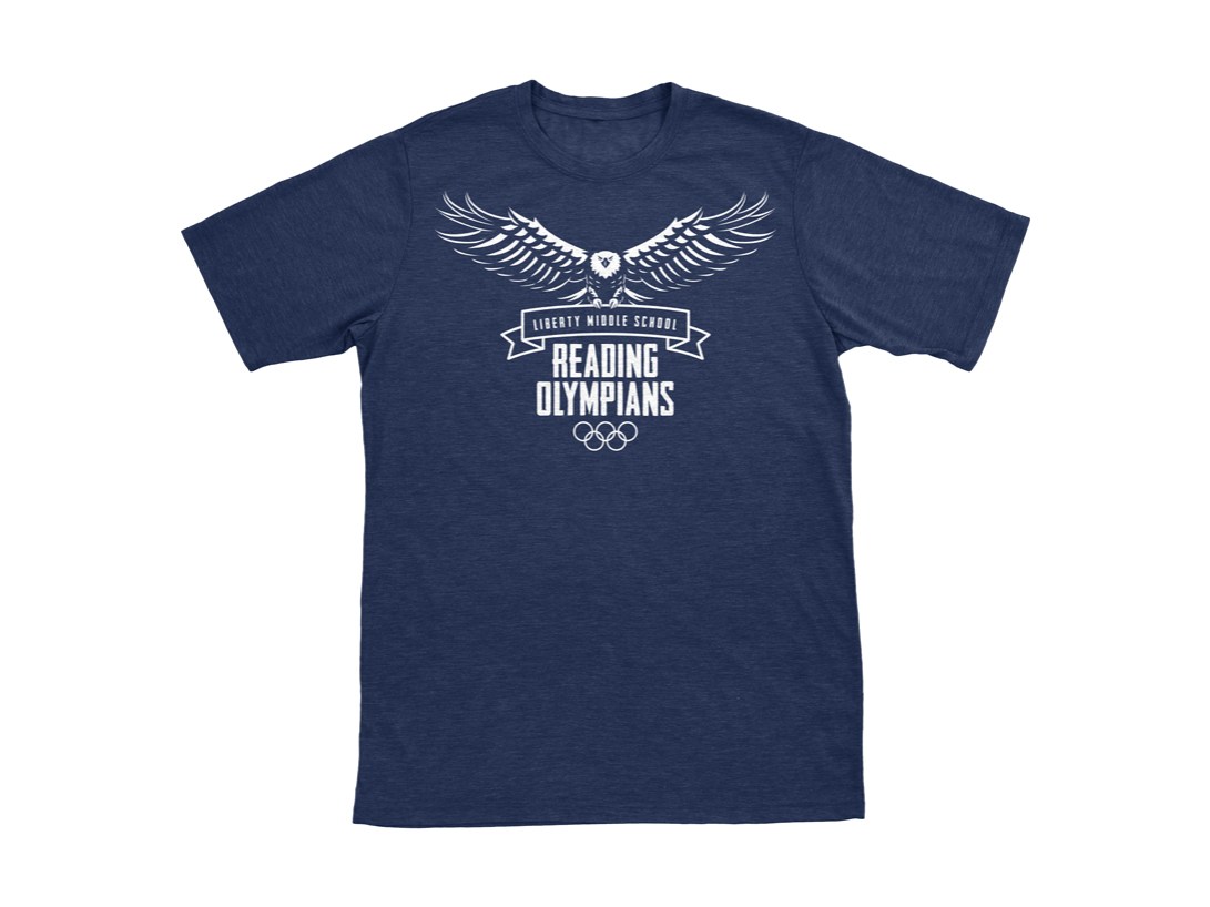 Reading Olympics is a countrywide reading event that encourages students to increase the quality and quantity of books they read for enjoyment. I designed this logo specifically for Liberty Middle School‘s Reading Olympics program, with the goal of creating something to get both students and teachers excited to sign up. The design was printed on navy blue t-shirts, which were proudly worn by everyone who participated.